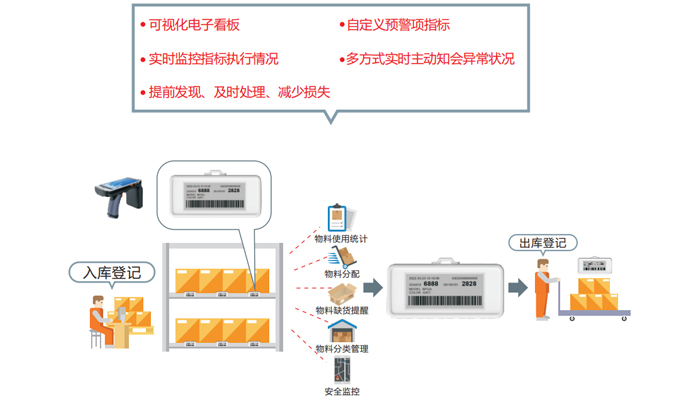 a 應用於倉儲場景,能無線更新貨品庫存,減少人工塗改動作,提高正確性和人員效率;