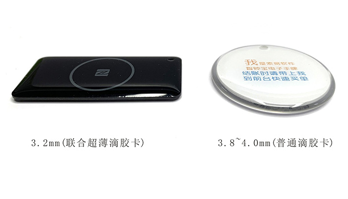 超薄設計,小巧漂亮,更方便攜帶。聯合智能滴膠卡厚度隻有3.2MM,普通滴膠卡厚度爲3.8MM-4.0MM。
